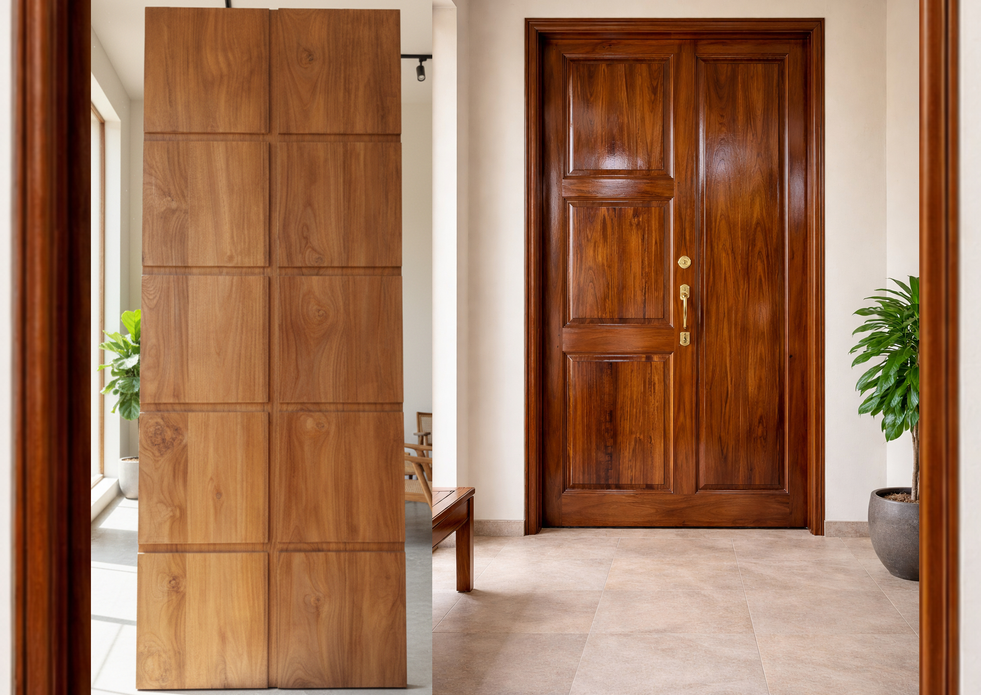 S L S Wood Industries proudly offers premium-quality wooden doors crafted with precision and care using 100% heartwood only, ensuring superior strength, durability, and natural beauty. Our wooden doors are designed to enhance the elegance of any home or commercial space while providing long-lasting performance and resistance to wear and termites. With rich natural grains and flawless finishing, each door reflects our commitment to craftsmanship and quality built since 1990. We customize designs to match modern and traditional interiors, delivering doors that combine aesthetic appeal, security, and timeless value.